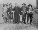 Sujet principal :JEUNES COSTUMES POSANT AVEC UN RELIGIEUX.