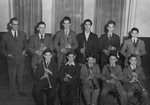 Description :10 MUSICIENS POSENT EN 2 RANGS. MARCEL MARCOTTE, DIRECTEUR, EST LE 1ER A PARTIR DE LA GAUCHE. ASSIS; ?; JEAN-PAUL GARANT; ? MONGEAU; ?; ? DEBOUT: MARCEL MARCOTTE; ?; ANDRE CODERE; CAMILLE GARANT; GUY DENONCOURT; JULES CHAPDELAINE.