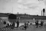 Description :1.1 : ON VOIT LA BATISSE "JENCKES" ENTOUREE D'EAU ET DEUX CHALOUPES PRES DE LA VOIE FERREE AINSI QUE PLUSIEURS PERSONNES EN TENUE DE VILLE. - 1.2 : UNE FOULE ASSEMBLEE PRES D'UN WAGON ET D'UNE LOCOMOTIVE EN MARCHE. DEVANT, IL Y A UNE CHALOUPE ...