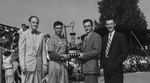 Description :JACQUES LALIBERTE EN HABIT DE VILLE REMET A ANDRE VAUDRY, JOUEUR DE BASEBALL DE L'EQUIPE DES CARDINAUX DE WINDSOR LE TROPHEE DU JOUEUR AYANT CONSERVE LA MEILLEURE MOYENNE AU BATON, SOIT .512 DURANT LA SAISON REGULIERE DE LA LIGUE INTERMEDIAIRE...