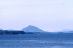 Description :LA PHOTO EST PRISE SUR LE LAC MEMPHEMAGOG; AU LOIN, ON VOIT LE MONT OLW'S HEAD AVEC DES PISTES DE SKI.