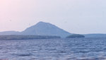 Description :LA PHOTO EST PRISE SUR LE LAC. ON VOIT UNE ILE RONDE (D'OU SON NOM) AU BOUT D'UNE PENINSULE; A L'ARRIERE-PLAN, LE MONT OLW'S HEAD.