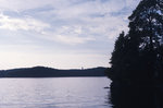 Description :LA PHOTO EST PRISE SUR LE LAC. ON APERCOIT UN PETIT VOILIER ET UNE POINTE D'UNE ILE AINSI QUE LE LITTORAL DU LAC.