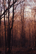Description :PHOTOS PRISES AU CREPUSCULE QUI MONTRENT LA SILHOUETTE D'ARBRES FEUILLUS EN BOURGEONS.