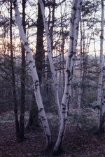 Description :DANS UNE FORET IL Y A DES BOULEAUX BLANCS A TRAVERS D'AUTRES FEUILLUS ET CONIFERES.