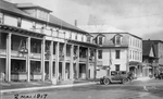 Description :FACADE DU DERBY LINE HOTEL ET DU BUREAU DES DOUANES AMERICAINE. STATIONNEES, 2 AUTOS DES ANNEES 1910