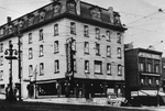 Description :VUE DE FACE ET DU COTE DE L'HOTEL. A DROITE ON PEUT VOIR L'HOTEL ANSONIA QUI SURMONTE LE COMMERCE KUSHNER'S. DANS LE CIEL, LES LIGNES ELECTRIQUES DU TRAMWAY.