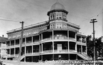 Description :LE CLUB SOCIAL, COIN PROSPECT ET QUEEN, EST UN EDIFICE ORNE DE QUATRE LARGES COLONNES HAUTES DE DEUX ETAGES. CHEMINEE ORNEE. TOUR AU COIN DROIT. STYLE NEO-COLONIAL.