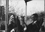 Description :2 HOMMES PORTANT VESTON ET CRAVATE SONT ASSIS SUR DES CHAISES EN OSIER SUR UN BALCON. HECTOR VERRET EST DE FACE ET NELSON DE PROFIL.