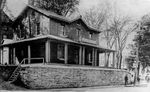 Description :RESIDENCE DE DR LOOMIS. MAISON EN BOIS A PLUSIEURS PIGNONS AVEC UNE TOUR OCTOGONALE A L'EXTREMITE DROITE. PLUSIEURS ARBRES ET ARBUSTES ENTOURENT LA PROPRIETE.