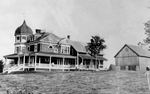 Description :RESIDENCE DE STYLE QUEEN ANN AVEC UNE TOUR, PLUSIEURS PIGNONS ET UNE TOITURE SURMONTEE D'UNE BALUSTRADE. UNE VERANDA SEMBLE FAIRE LE TOUR DE LA RESIDENCE. GRANGE SUR LE TERRAIN ARRIERE.