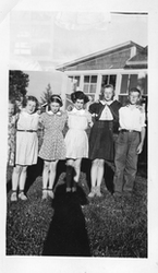Description :DE GAUCHE A DROITE: LOUISE, ANDREE, FRANCOISE, LILIAN MORGAN (COUSINE), IRENE ET JEAN DESILETS.