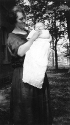 Description :JEAN DESILETS EST DANS LES BRAS DE SA MERE, LUCIENNE VERRET. IL A 2 1/2 MOIS.