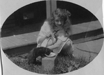 Sujet principal :LUCIENNE VERRET, ENFANT, DONNE A BOIRE A UN CHATON.