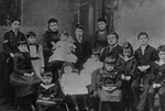 Description :PHOTO PRISE EN STUDIO DE M. ET MME F.-X. LEMIEUX AVEC LEURS TREIZE ENFANTS. DERNIERE RANGEE, DEBOUT A DROITE, MATHILDE LEMIEUX VERS L'AGE DE 15 ANS.