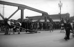 Description :LES PHOTOS ONT ETE PRISES SUR LE PONT AYLMER, A SHERBROOKE. LE FOULE EST DEBOUT ET FORME UNE CHAINE SUR LE PONT. 2.1: A GAUCHE DE LA PHOTO DEFILE UN CHEVAL DE LABOUR, A DROITE, UN HOMME EN COSTUME TRADITIONNEL D'AMERINDIEN TIENT UN CHEVAL. A L...