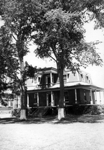 Description :PHOTOGRAPHIE DE LA FACADE ET DE L'AILE GAUCHE DU COUVENT DE WOTTON. C'EST UN EDIFICE DE TROIS ETAGES EN BRIQUES.