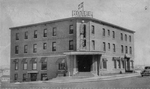 Description :PHOTOGRAPHIE DES DEUX FACES AVANT DE L'HOTEL HEBERT QUI EST SITUE SUR UN COIN DE RUES. C'EST UNE BATISSE EN BRIQUES DE TROIS ETAGES ET DEMI. L'ENTREE PRINCIPALE EST AU COIN DES DEUX RUES. SUR LE TOIT, IL Y A UNE ENSEIGNE AVEC LES LETTRES HOTEL...