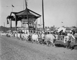 Sujet principal :PARADE D'UN BOEUF GAGNANT DE PLUSIEURS PRIX LORS DE L'EXPOSITION AGRICOLE DE SHERBROOKE.