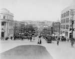 Description :VUE SUR LA RUE DUFFERIN, A PARTIR DU PONT HYATT OU L'ON VOIT LES RAILS DE TRAMWAYS. 1ER EDIFICE, A GAUCHE, LA BANQUE DE COMMERCE, ENSUITE LE BUREAU DE POSTE. CES DEUX EDIFICES SONT EN PIERRE ET DE STYLE SECOND EMPIRE. LE 3EME EDIFICE, A GAUCHE...