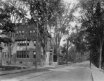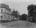 Description :VUE SUR LA RUE DUFFERIN EN ALLANT VERS LE NORD. C'EST UNE RUE BORDEE DE GRANDS ARBRES ET AU CENTRE, ON DISTINGUE LES RAILS DE TRAMWAYS. A GAUCHE, LE CLUB ST.GEORGE'S QUI EST UNE GRANDE MAISON EN BRIQUE DE 3 ETAGES AVEC DE NOMBREUSES FENETRES C...