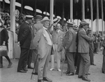Sujet principal :GROUPE DE NOTABLES DEVANT LA GRANDE ESTRADE DE L'EXPOSITION AGRICOLE DE SHERBROOKE