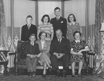 Description :LA FAMILLE SYLVESTRE REUNIE DANS LE SALON DE LEUR MAISON. ASSIS SUR LE DIVAN, DE GAUCHE A DROITE, JEAN, MME MARGUERITE SYLVESTRE (ST-JEAN), GEORGES SYLVESTRE ET GABRIELLE. DEBOUT DERRIERE LE DIVAN, PIERRE, THERESE, JACQUES ET MARGUERITE.