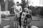 Description :LES SIX ENFANTS DE GEORGES SYLVESTRE DANS LA COUR DE LEUR MAISON SITUEE SUR LA RUE MURRAY. ILS SONT POSES DEVANT LA BALANCOIRE; A GAUCHE LES 3 GARCONS, LES UNS DERRIERE LES AUTRES, EN COMMENCANT PAR LE PLUS JEUNE: JEAN ENSUITE PIERRE ET L'AINE...