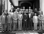 Description :GROUPE DE NOTAIRES DEVANT LE CLUB SOCIAL. DE GAUCHE A DROITE, 1ERE RANGEE, MAURICE BEAUCHESNE, D'ASBESTOS, PRESIDENT DE L'ASSOCIATION DES NOTAIRES DU DISTRICT DE ST-FRANCOIS ET REPRESENTANT DE NOTRE DISTRICT A LA CHAMBRE DES NOTAIRES; EMILE DE...