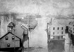 Description :INONDATION AU CENTRE-VILLE. BAS-GAUCHE, STATION DE POMPIER ET DE POLICE AINSI QUE LE HAY AND WOOD MARKET DANS UNE MEME BATISSE EN BOIS. DERRIÔRE: LE MARCHE AUX ANIMAUX PUIS LES USINES. MILIEU DROIT, EDIFICE COMMERCIAL DE JOSEPH EMOND ETABLI E...