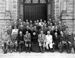 Notes :ECRIT AU VERSO DE LA PHOTO: "LES MONITEURS DE L'O.T.J. - ANNEE 53-WHAT A STAFF". LA BIBLIOTHEQUE MUNICIPALE ETAIT ALORS SUR KING OUEST.