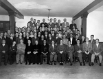 Sujet principal :GROUPE D'INVITES LORS DE LA FETE DONNEE EN L'HONNEUR DE JOS BLAIS, MEMBRE DE LA CHORALE ST-JEAN-BAPTISTE