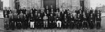 Description :LA CHORALE DE LA PAROISSE ST-JEAN-BAPTISTE PHOTOGRAPHIEE DEVANT L'EGLISE. DE GAUCHE A DROITE 1ERE RANGEE: JEAN-MARIE GREGOIRE, PAUL BOULANGER, OLIVIER ARCHAMBAULT, ALEXANDRE LAFONTAINE, DOLOR BIRON, CURE DE LA PAROISSE ST-JEAN-BAPTISTE; GEORGE...