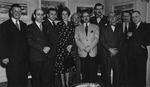 Description :11.1: UN GROUPE DE 10 PERSONNES, DONT UNE FEMME, PRENNENT LA POSE. A L'EXTREME DROITE, M. LOUIS-PHILIPPE ROBIDOUX. SUR LE MUR, DERRRIERE EUX, ON APERCOIT DES TABLEAUX. 11.2: 6 HOMMES SOURIANTS DISCUTENT. LE 2E A DROITE EST L.P. ROBIDOUX (IL ES...