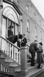 Description :A LA SORTIE DU COUVENT DES S.S. MISSIONNAIRES N-D. DES ANGES DE LENNOXVILLE. AU DESSUS DE LA PORTE C'EST ECRIT: "DES AMES! PAR MARIE!" MADELEINE DURAND, SOEUR MARIE-EMMANUEL, PAUL-EUGENE LACHANCE, HENRI DURAND, JEANNE DURAND, BARTHELEMY DURAND...