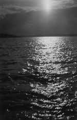 Description :2.1: ON VOIT LE LAC MEGANTIC, AU LOIN, DES MONTAGNES, LE CIEL EST NUAGEUX, LE SOLEIL SE CACHE DANS LES NUAGES. 2.2: ON VOIT LE LAC MEGANTIC. AU BORD IL Y A QUELQUES ROCHERS ET AU CENTRE DE LA PHOTO, 2 TRONCS D'ARBRES.