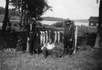 Description :6.1: ARTHUR COUSINEAU, HERMINI DUBUC ET UN AUTRE HOMME EN EXPEDITION DE PECHE. LES 2 PREMIERS SONT DEBOUT ET L'AUTRE EST ASSIS PAR TERRE ENTRE EUX. ENTRE LES DEUX HOMMES DEBOUT, SIX POISSONS ACCROCHES A UN MORCEAU DE BOIS. L'HOMME ASSIS TIENT ...