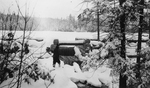 Description :1.1: ON VOIT UN PAYSAGE D'HIVER. AU BAS DE LA PHOTO UNE RIVIERE. 1.2: AU LAC DES COUSINEAU A PIOPOLIS. LEUR CHALET AU LOIN. 1.3: ISRAEL DUBUC, JULES COUSINEAU ET HERMINI DUBUC ENLEVE LA NEIGE DEVANT LA PORTE DU CHALET EN BOIS ROND. 1.4: JULES ...