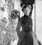 Description :PORTRAIT D'UNE FEMME NON IDENTIFIEE, DEBOUT SUR UNE GALERIE.