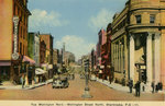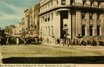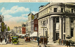 Description :VUE SUR LA RUE WELLINGTON NORD. UN TRAMWAY DE LA LIGNE "BELT" PASSE. DES GENS SE PROMENENT EN VOITURES TIREES PAR DES CHEVAUX. DES AUTOS SONT STATIONNEES SUR LE COTE OUEST DEVANT L'EASTERN CAFE. ON PEUT LIRE SUR L'ARRIERE D'UNE DE CES AUTOS...