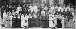 Description :DES ENFANTS SONT VETUS DE COSTUMES REPRESENTANT LES DIFFERENTES COMMUNAUTES RELIGIEUSES VENUES COLONISER LE PAYS, LORS DE L'EXPOSITION MISSIONNAIRE.