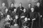 Description :ASSIS AU CENTRE, ON VOIT MODESTE COTE ET SON EPOUSE ENTOURES DE LEURS DIX ENFANTS.
