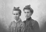 Description :PORTRAIT EN BUSTE DES DEUX SOEURS PORTANT UN RUBAN AU DESSUS DE LEUR TOQUE.