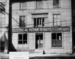 Description :VUE SUR LA COMPAGNIE "ELECTRICAL REPAIR & SUPPLY COMPANY" SUR LA RUE WELLINGTON. EDIFICE A 3 ETAGES EN BRIQUES GRISES. DANS LES FENETRES DU BAS, DES ANNONCES DE "PAGE PRINTER AND BOOKBINDER".