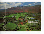 Description :LE MONT ORFORD AU DEBUT DE L'AUTOMNE. LA MONTAGNE EST TACHETEE DE ROUGE, ORANGE ET JAUNE. LE GOLF ET LE CENTRE D'ART APPARAISSENT A GAUCHE ET A DROITE, A L'AVANT-PLAN.