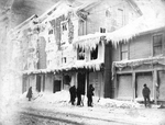 Description :L'EDIFICE DU REMBOUREUR BELANGER, RUE WELLINGTON NORD, COUVERT DE GLACE ET DE NEIGE CREEES PAR L'EAU DEVERSEE PAR LES POMPIERS. A GAUCHE, EDIFICE ODELL. 5 PERSONNES CIRCULENT AVEC DES PELLES.