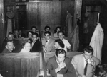Description :3.1 - 3.2 MARGUERITE MORISSET EST ASSISE AU MILIEU, ENTOUREE DE SA TROUPE DE THEATRE. DE GAUCHE A DROITE, DEBOUT: GERARD CHAPDELAINE, FERNAND MORISSETTE, YVON PICHETTE, ? ASSIS: LOUISETTE DELUGE, MUGUETTE ROUTHIER (?), MARGUERITE MORISSET-...