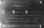 Description :PLAQUE PROBABLEMENT EN METAL VISSE DANS LE BOIS OU LE BETON POUR HONORER LE CHEF ROBERT DAVIDSON, POMPIER. DATE DE 9 NOVEMBRE 1924.