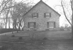 Description :MAISON EN PIERRES, VUE DE COTE. DE 2 ETAGES AVEC TOIT EN PENTE AVEC VOLETS ENCADRANT LES FENETRES A QUATRE CARREAUX. UNE PORTE EN ARCHE A ETE CONDAMNEE AU CENTRE ET RECOUVERTE DE PIERRES.