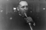 Description :1.1 L'ABBE MICHEL COUTURE PREND LA PAROLE AU MICRO. 1.2 L'ABBE COUTURE ENTOURE D'UN HOMME ET D'UN ECCLESIASTIQUE. ILS PORTENT UN RUBAN DE LA S.S.J.B.